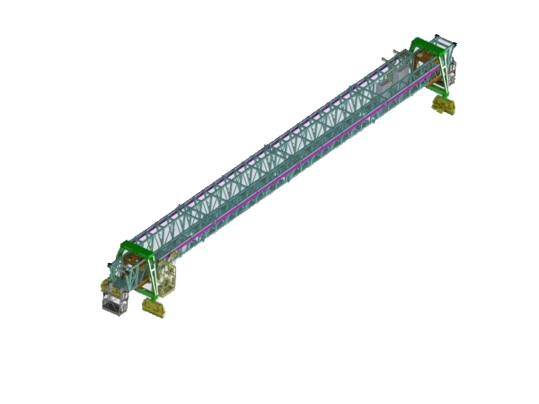 主拱檢修車安裝于拱肋的軌道上,沿著拱肋行走,采用齒條或鏈條形式電動爬軌,檢修車配備有吊籃系統(tǒng),可對拱立面、底面、吊桿、橫梁等進行檢修維護。具有軌距自適應、工作平臺自調平、三重制動安全保護和防墜、防滑安全保護等特點,舒適度高。