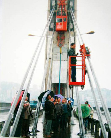 斜拉索檢修車是利用塔外提升機牽引斜拉索上的檢修桁架進行檢修,具有輕巧、靈活和便捷裝配等特點。