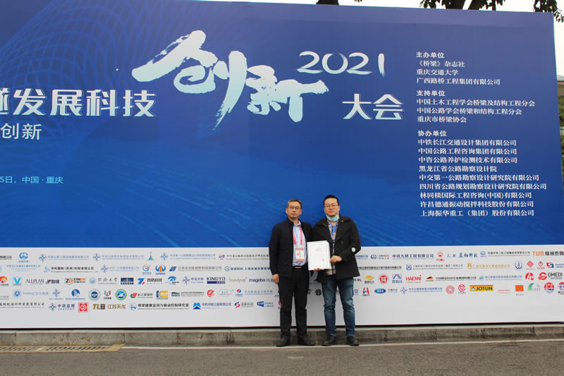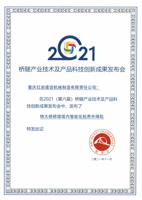 我司董事長在2021橋隧產(chǎn)業(yè)技術(shù)及產(chǎn)品科技創(chuàng)新成果發(fā)布會暨第六屆橋隧技術(shù)及產(chǎn)品創(chuàng)新大賽發(fā)表演講,主題為“特大橋橋塔塔內(nèi)智能化檢養(yǎng)升降機(jī)”。